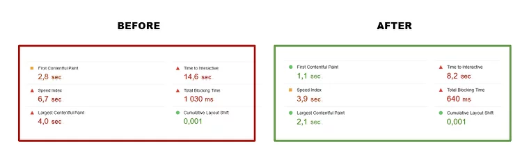Before optimization, the images on the website were not scaled according to the screen size. We replaced all the images with "next/image." Then, we adjusted the download priorities. Images that enter the viewport first should be loaded with high priority and without lazy loading—meaning, as quickly as possible. This impacts the site's rendering speed.