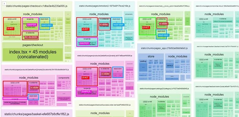 As a result, we removed the line that blocks code splitting, resulting in an almost 50% increase in performance. The built-in Next.js mechanism for breaking JavaScript code into chunks has been tested and recommended for production. There is no need to disable it; otherwise, the code will be duplicated for each page, even though reusable modules (such as React, React-DOM, and UI kit) should be placed in separate (common) chunks and not loaded again on each page.